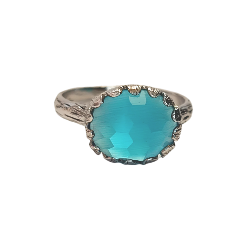 ANEL PRATA PEDRA COR SORTIDA OVAL