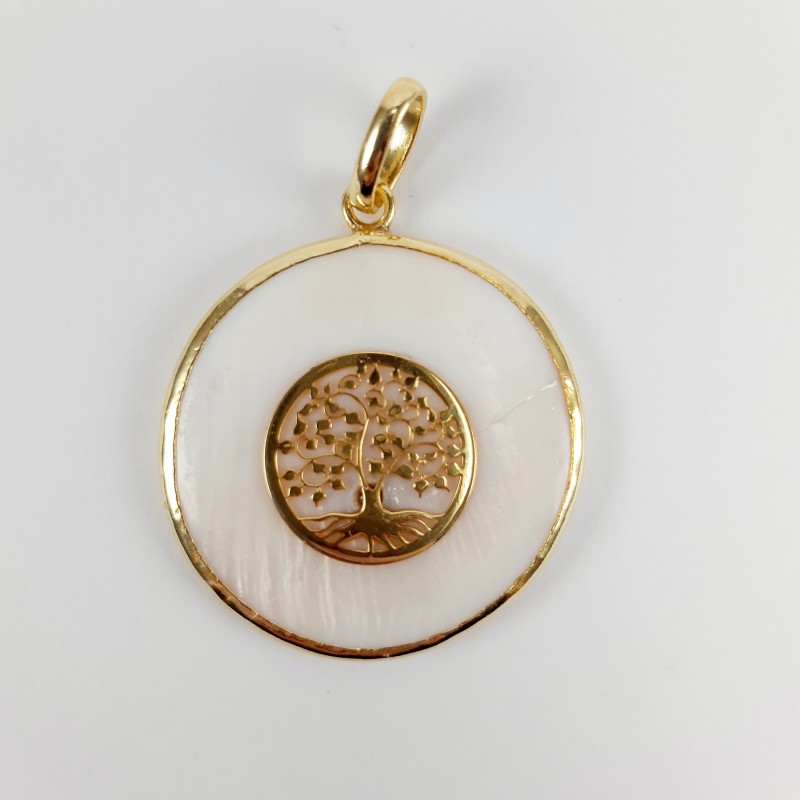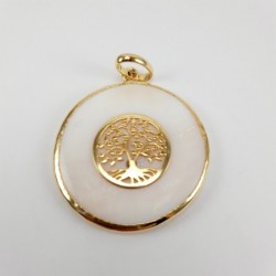 BERLOQUE DOURADO MADRE PÉROLA SIMBOLO ÁRVORE DA VIDA