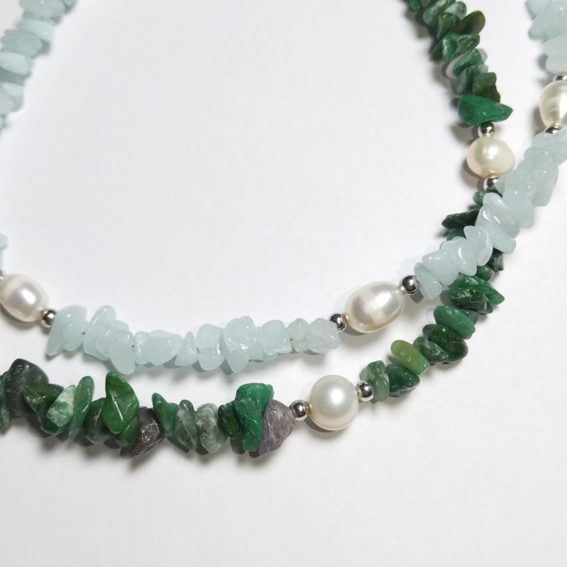 COLAR DE MISSANGA COM PEROLA GRÃO ARROZ E BOLA DE PRATA