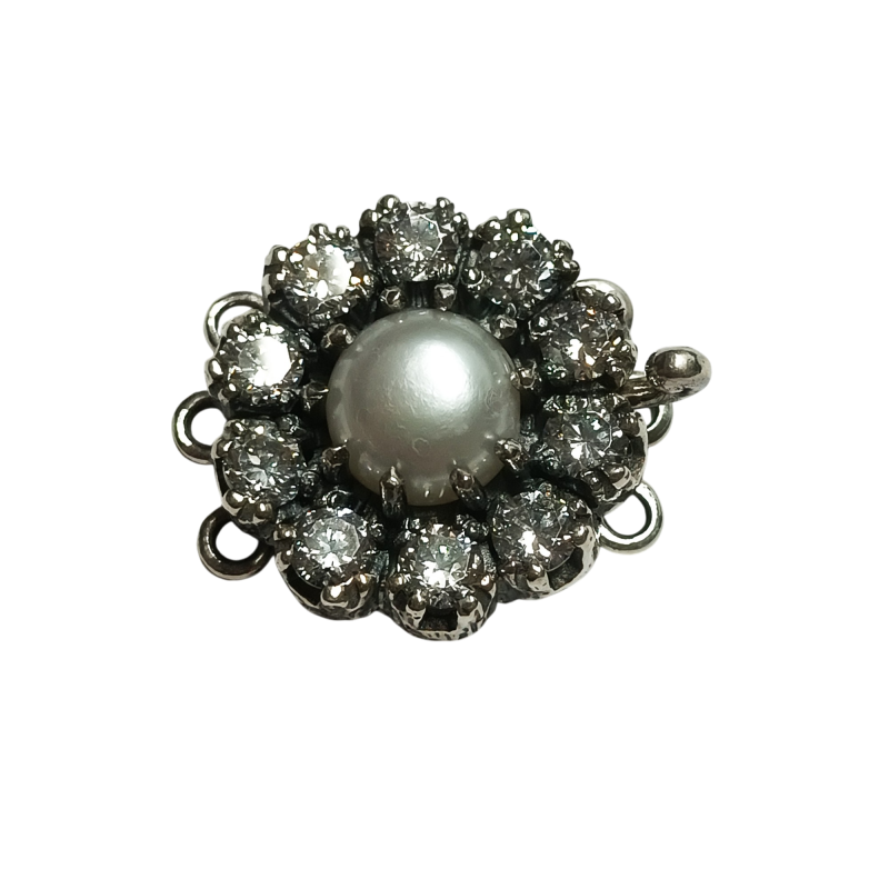 FECHO PRATA COM PEROLA FORMATO FLOR 2CM