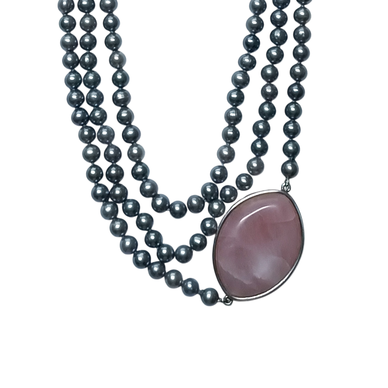 COLAR DE PEROLAS BERLOQUE PEDRA ROSA