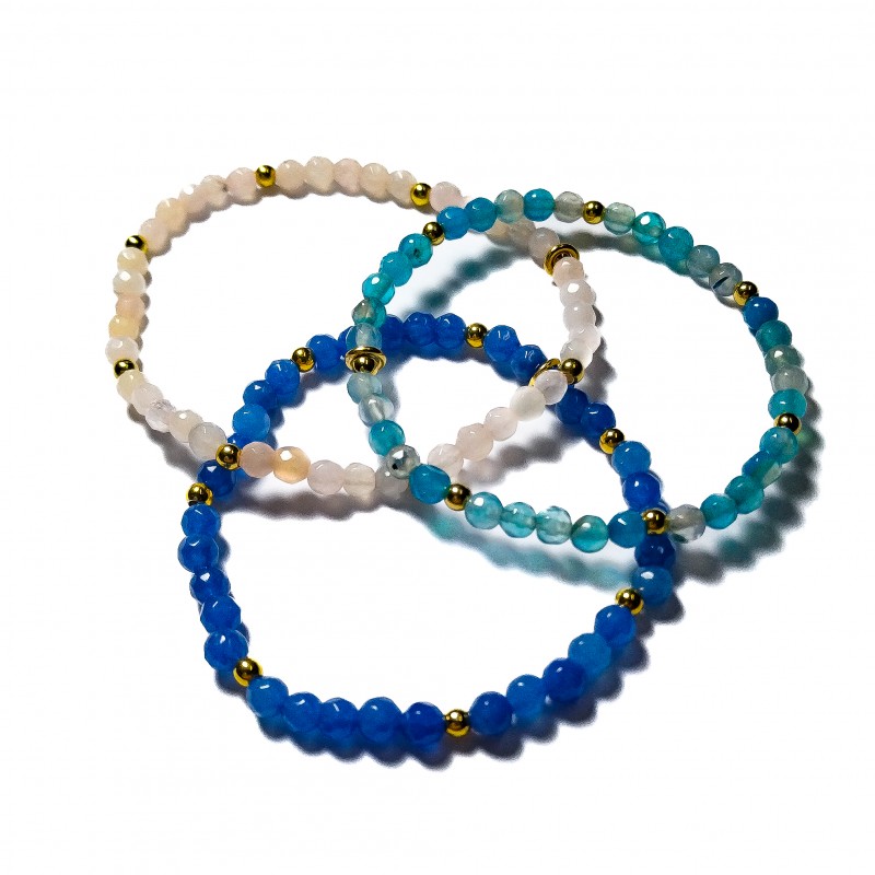 PULSEIRA COM PEDRA E BOLAS DE PRATA DOURADA