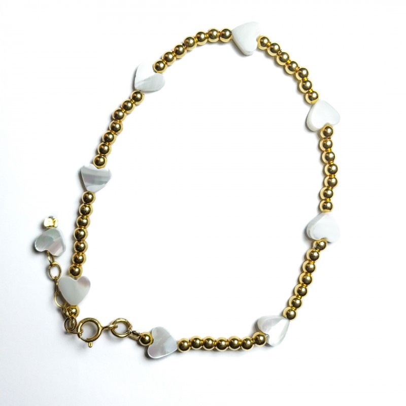 PULSEIRA COM CORAÇÃO MADRE PEROLA E BOLA EM PRATA DOURADA